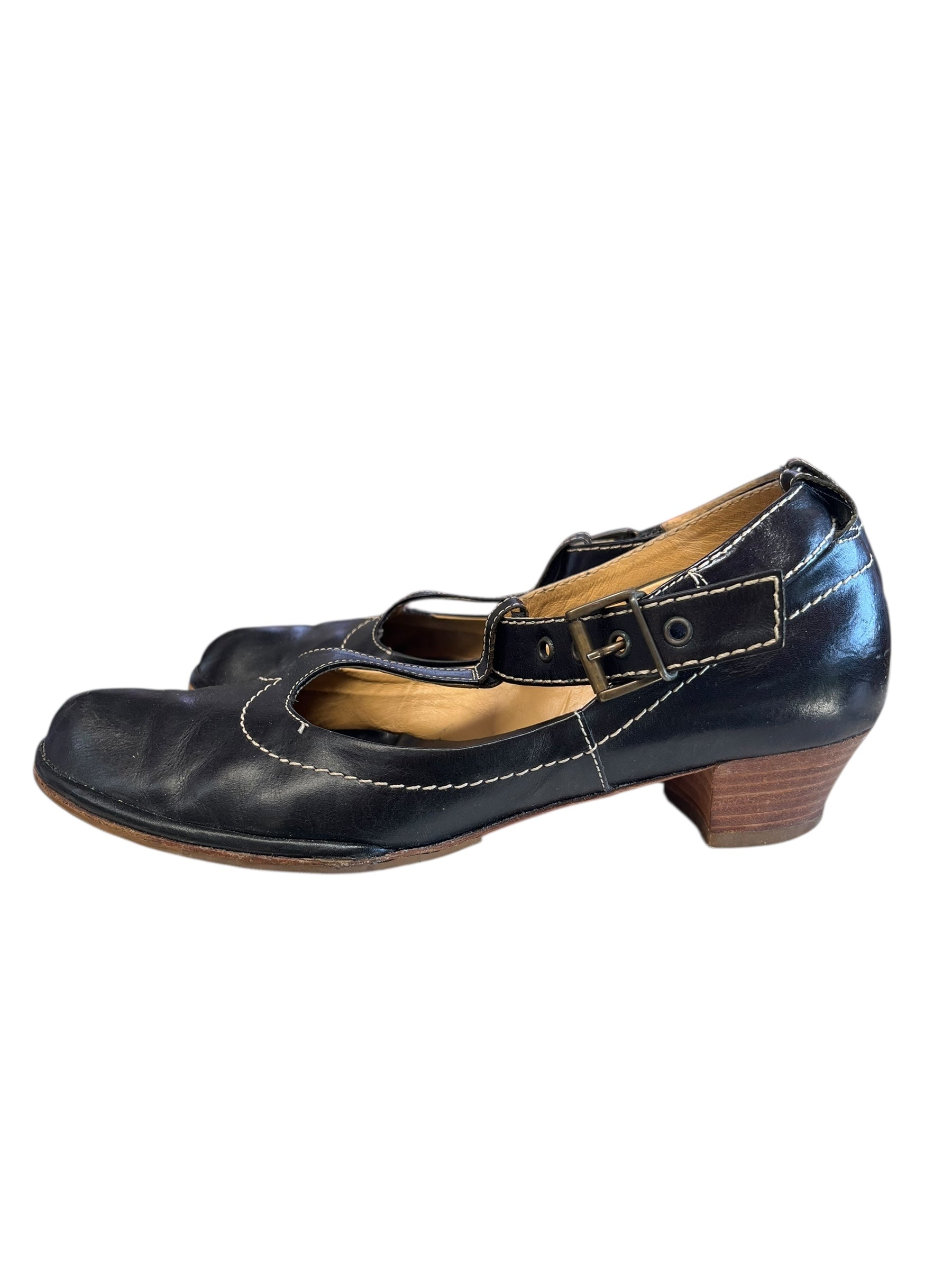 Black block heels with t.bars.