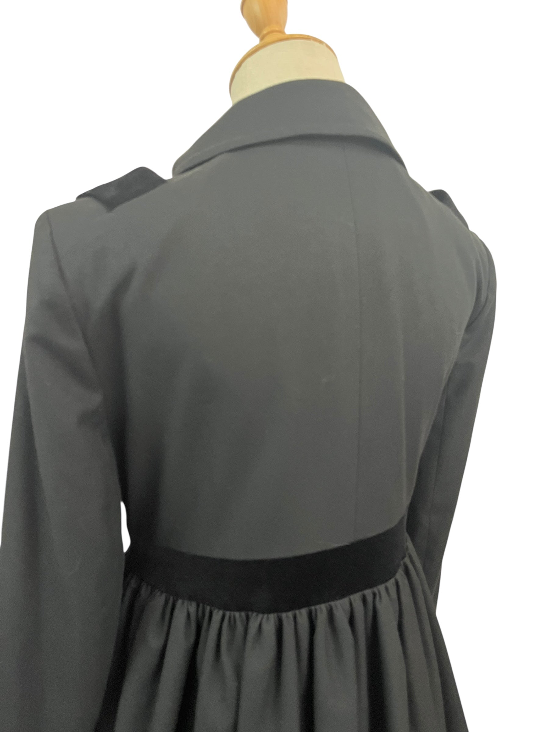 Modern brand but a fantastic goth / alt coat with its double breasted closure and velvet trims with matching velvet buttons.