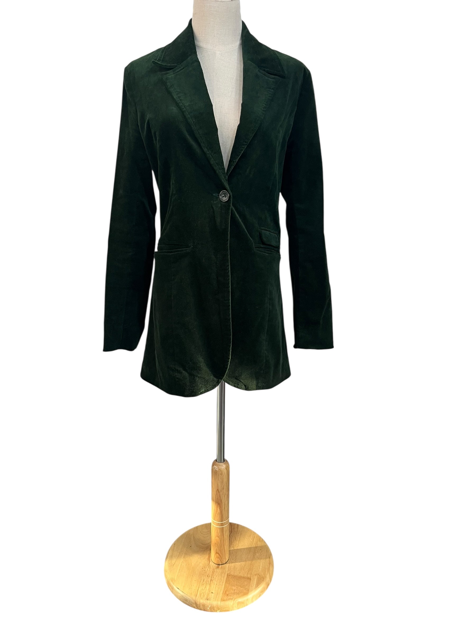 Green velvet jacket. With front pockets and 1 button.