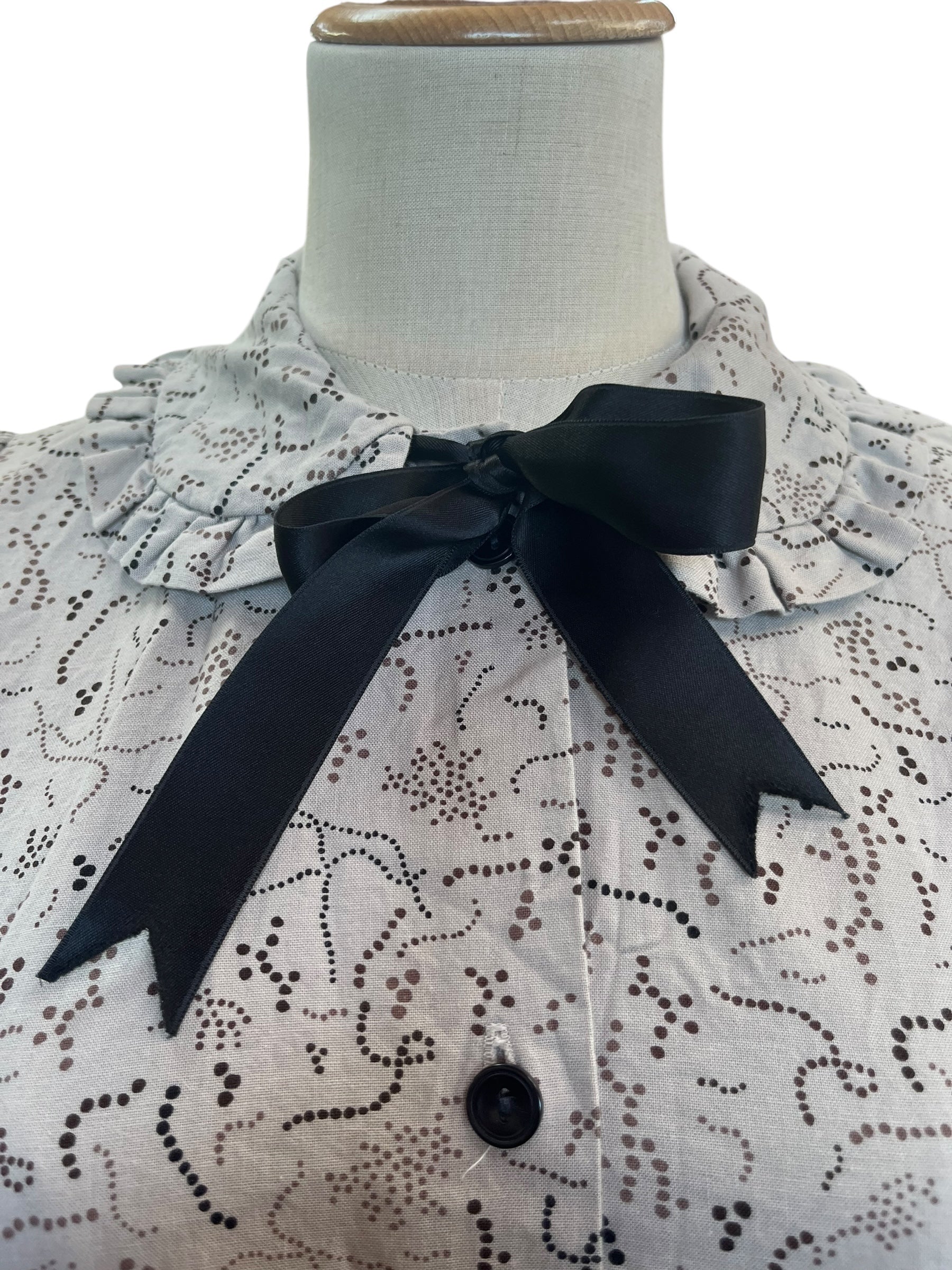 Sweet cotton shirt with elasticated sleeves and wee ribbon tie.