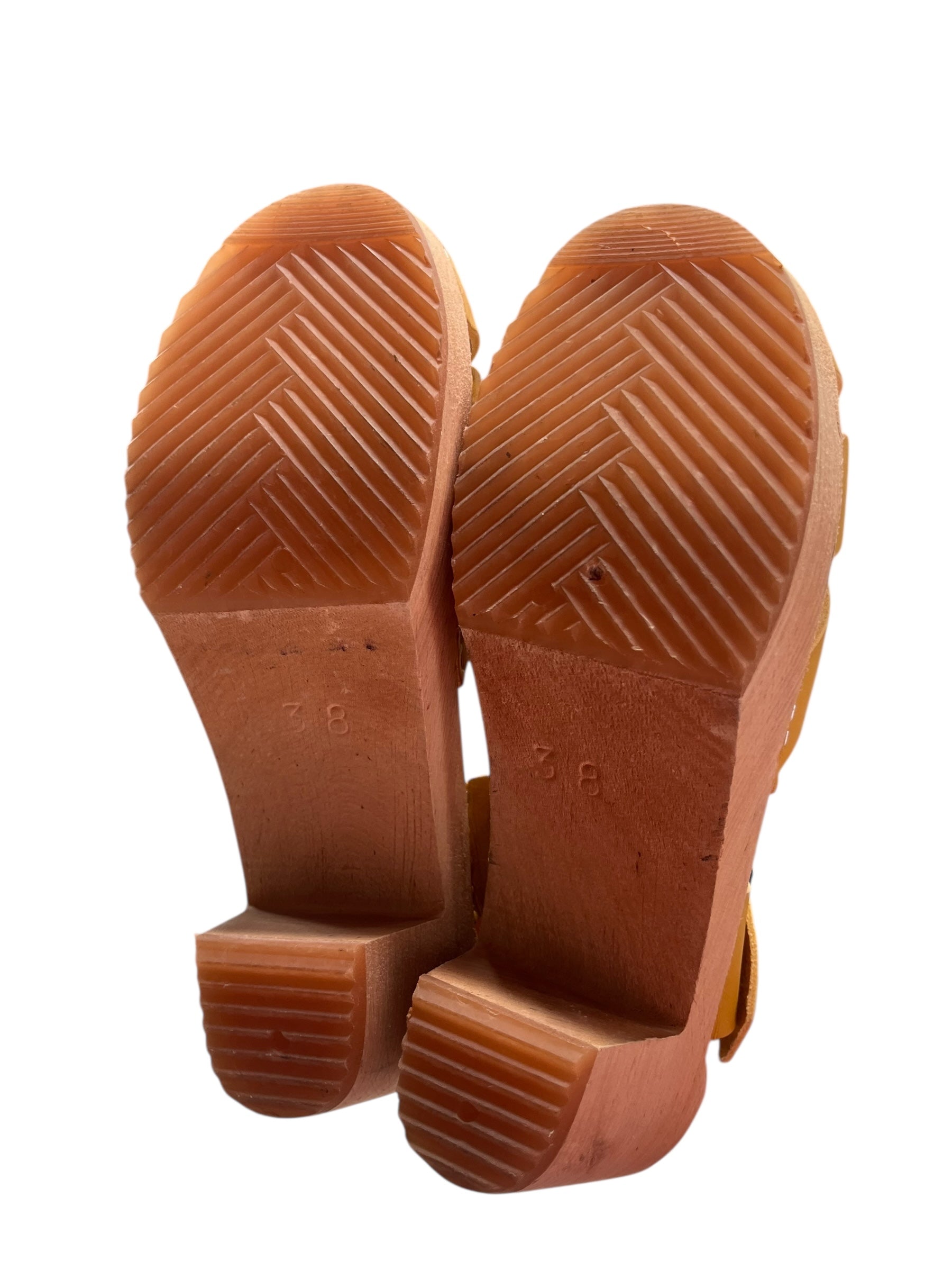 They are typically handmade in Sweden using sustainably sourced Scandinavian alder wood for the base and vegetable-dyed leather for the uppers. The wood provides a sturdy but lightweight sole, while the natural leather softens with wear, moulding to the foot. Many Funkis clogs also feature rubber grip soles for added comfort and durability.