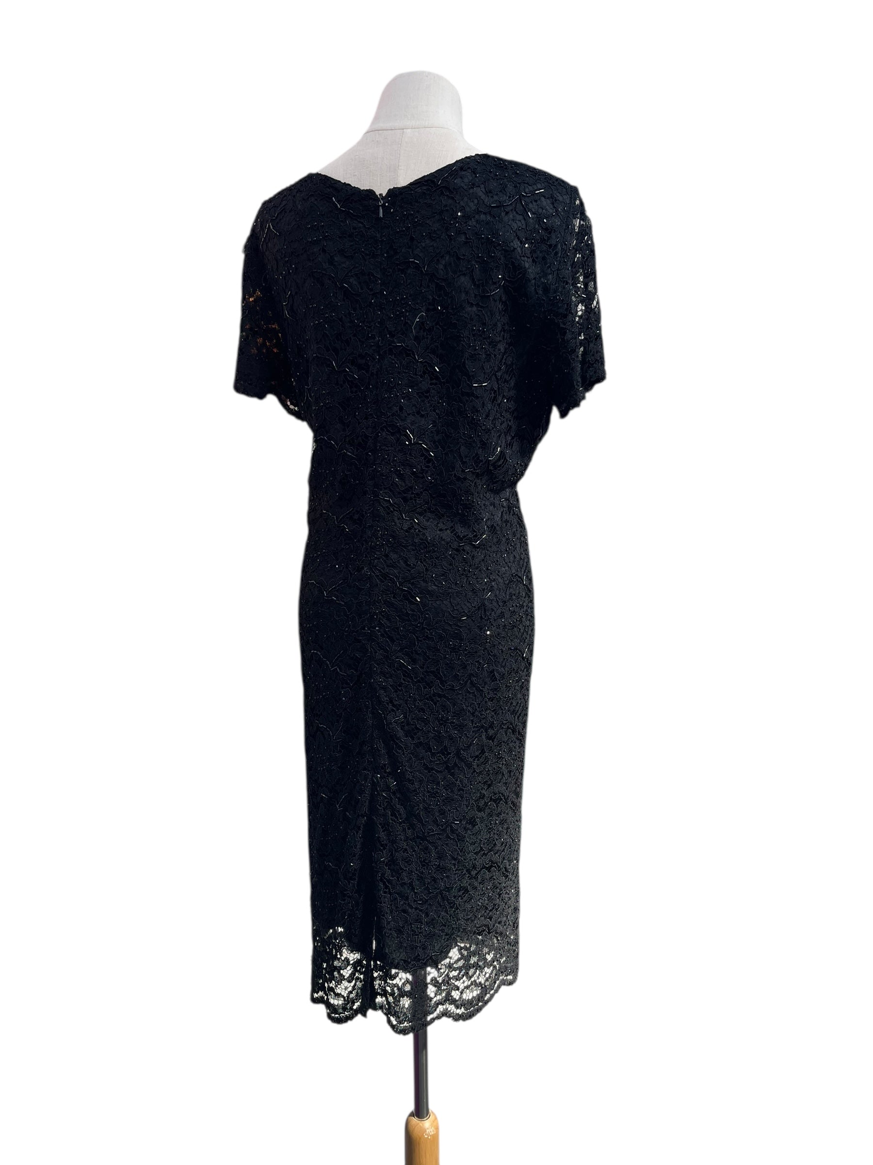 Lace dress heavy beading with an art deco vibe to it.