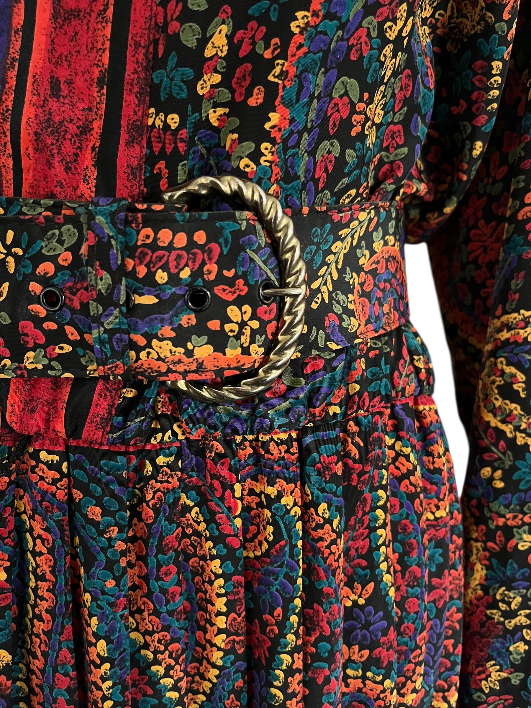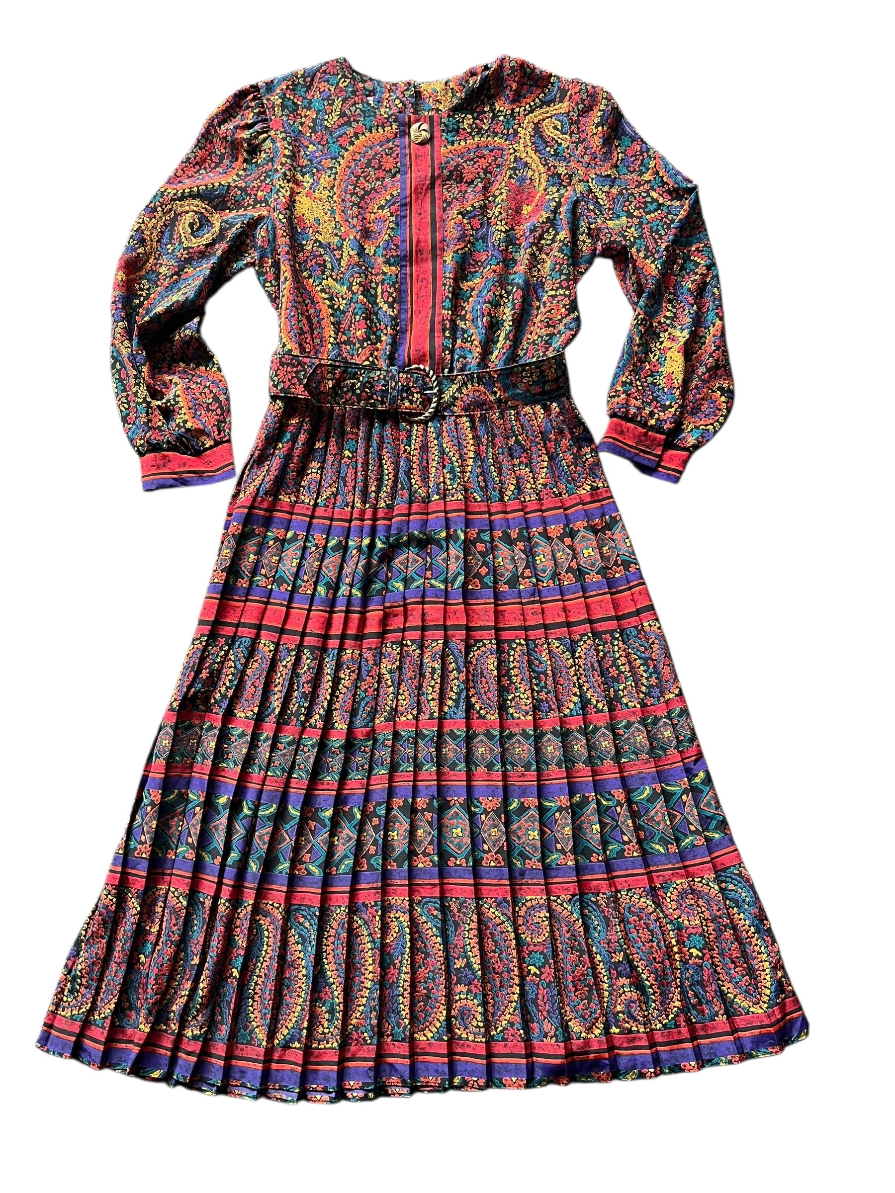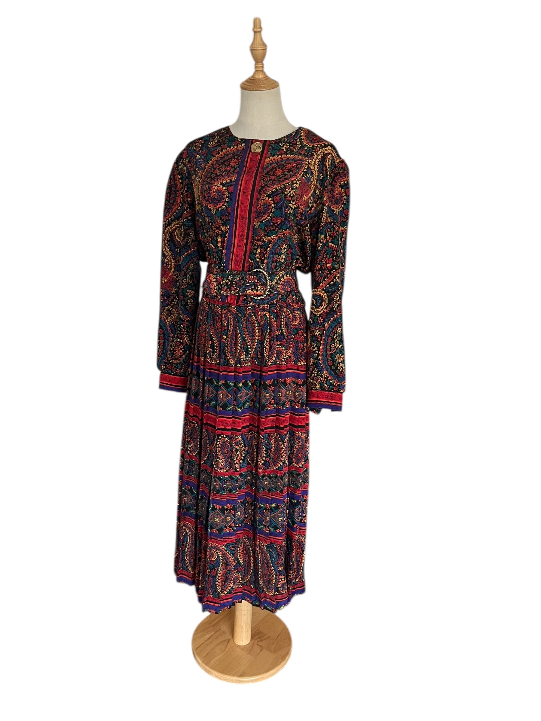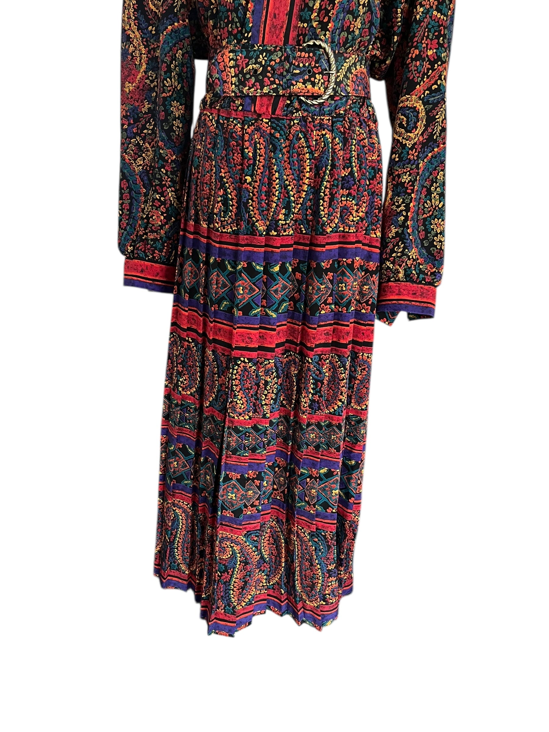 Beautiful and silky dress with pleated skirt and marching belt.