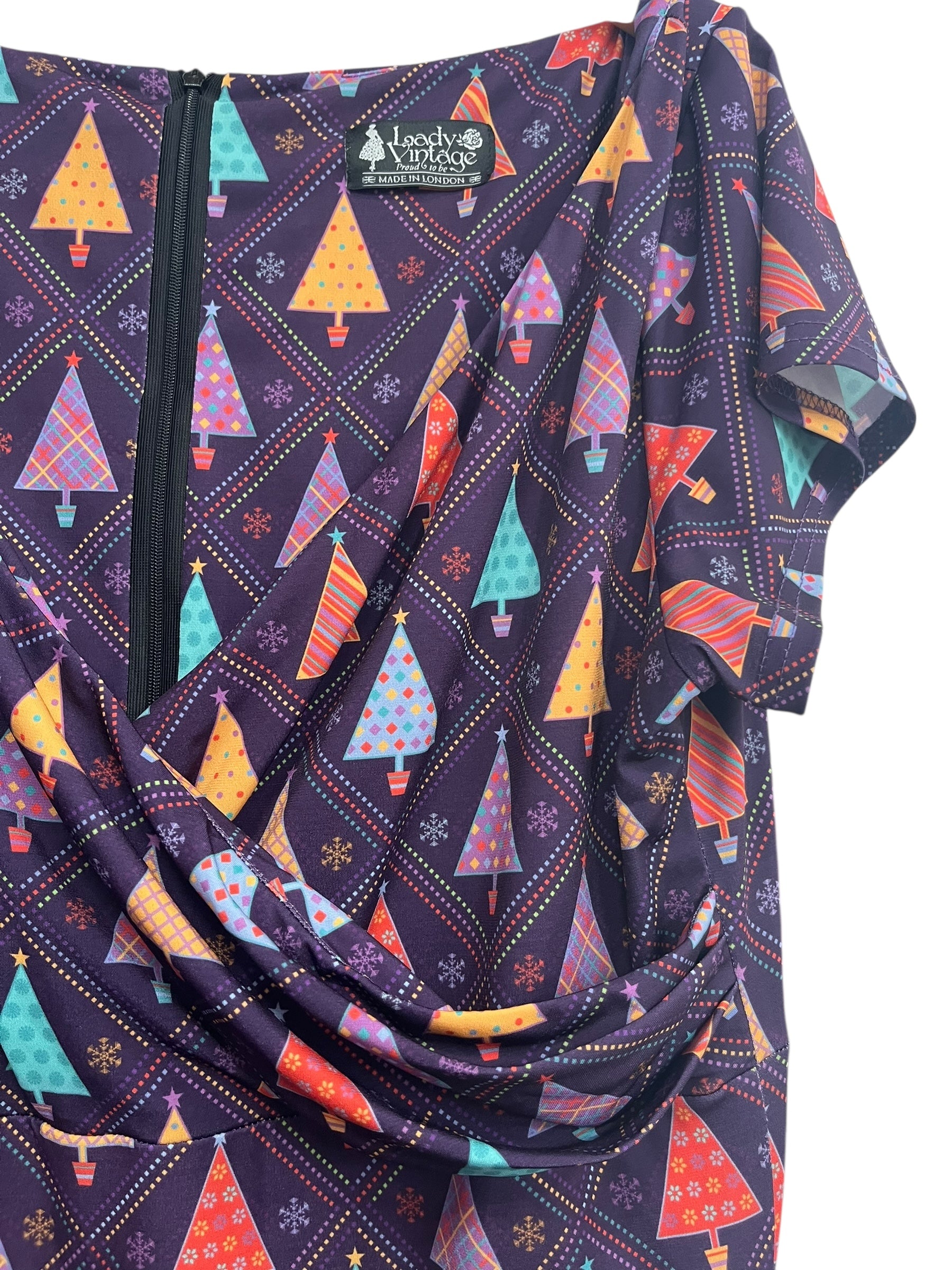 Lady Vintage Elsie dress cover in trees in a purple background.