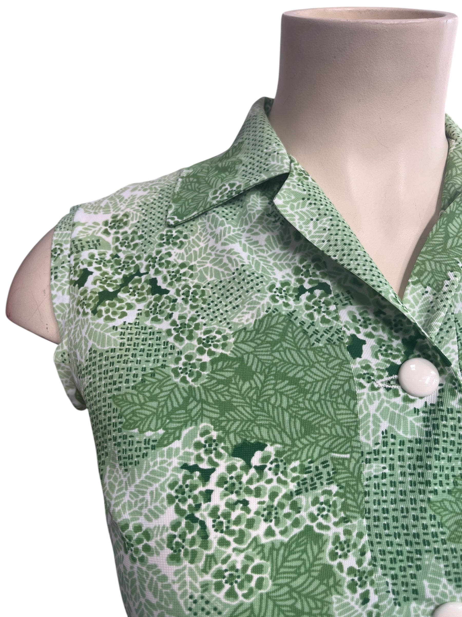 Fabulous green osti dress with white buttons up the front.