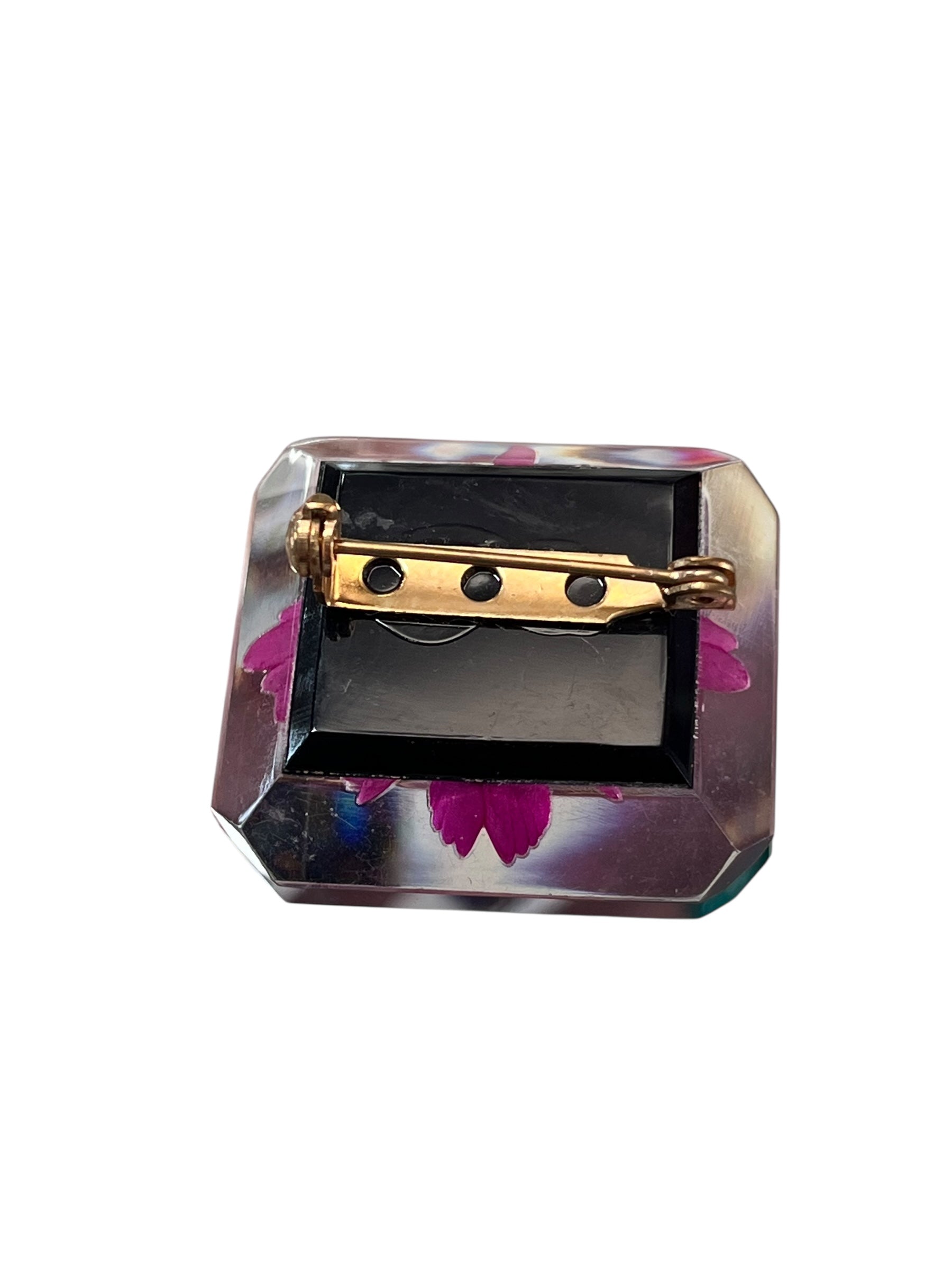 Incredible Lucite brooches first appeared in the 1940s, when wartime restrictions on metals encouraged designers to experiment with new materials. Lucite, a lightweight and durable acrylic plastic, proved perfect for creating bold, colorful, and often whimsical pieces of jewelry. From carved flowers and glitter-filled designs to novelty brooches shaped like animals or household items, Lucite quickly became a fashionable and affordable way for women to add personality to their outfits. Popular through the 1950s and into the early 1960s, these brooches are now highly collectible for their craftsmanship, playful charm, and the way they capture mid-century style.