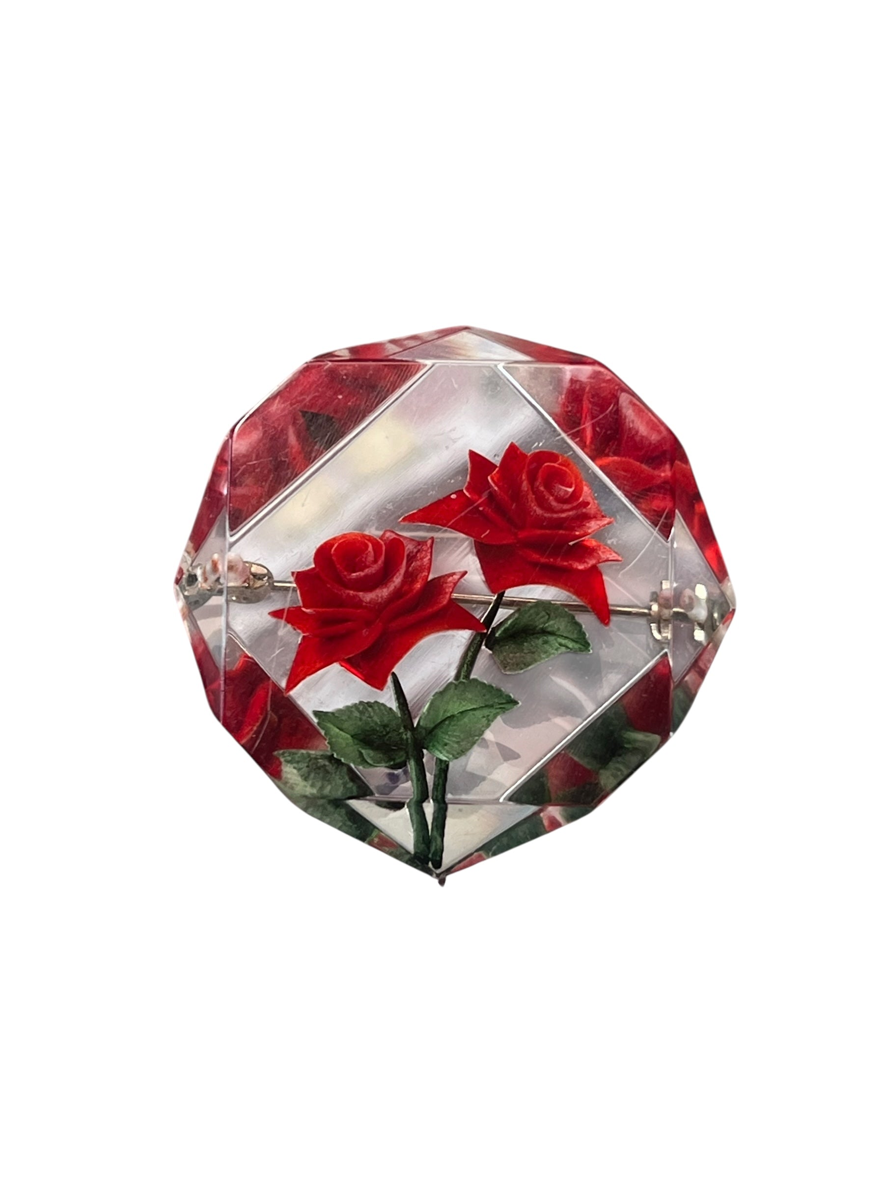Incredible Lucite brooches first appeared in the 1940s, when wartime restrictions on metals encouraged designers to experiment with new materials. Lucite, a lightweight and durable acrylic plastic, proved perfect for creating bold, colorful, and often whimsical pieces of jewelry. From carved flowers and glitter-filled designs to novelty brooches shaped like animals or household items, Lucite quickly became a fashionable and affordable way for women to add personality to their outfits. Popular through the 1950s and into the early 1960s, these brooches are now highly collectible for their craftsmanship, playful charm, and the way they capture mid-century style.
