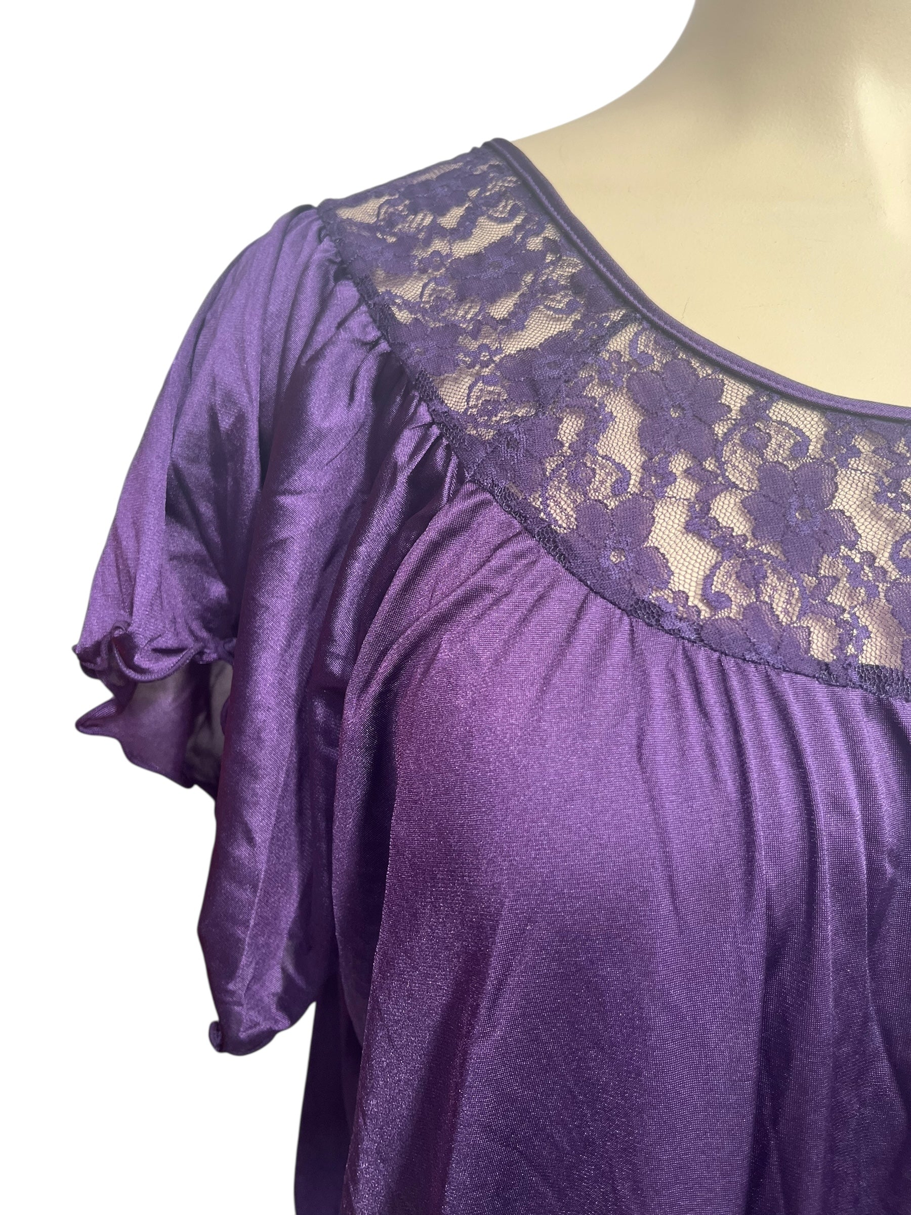 Demure purple nylon nightie.
