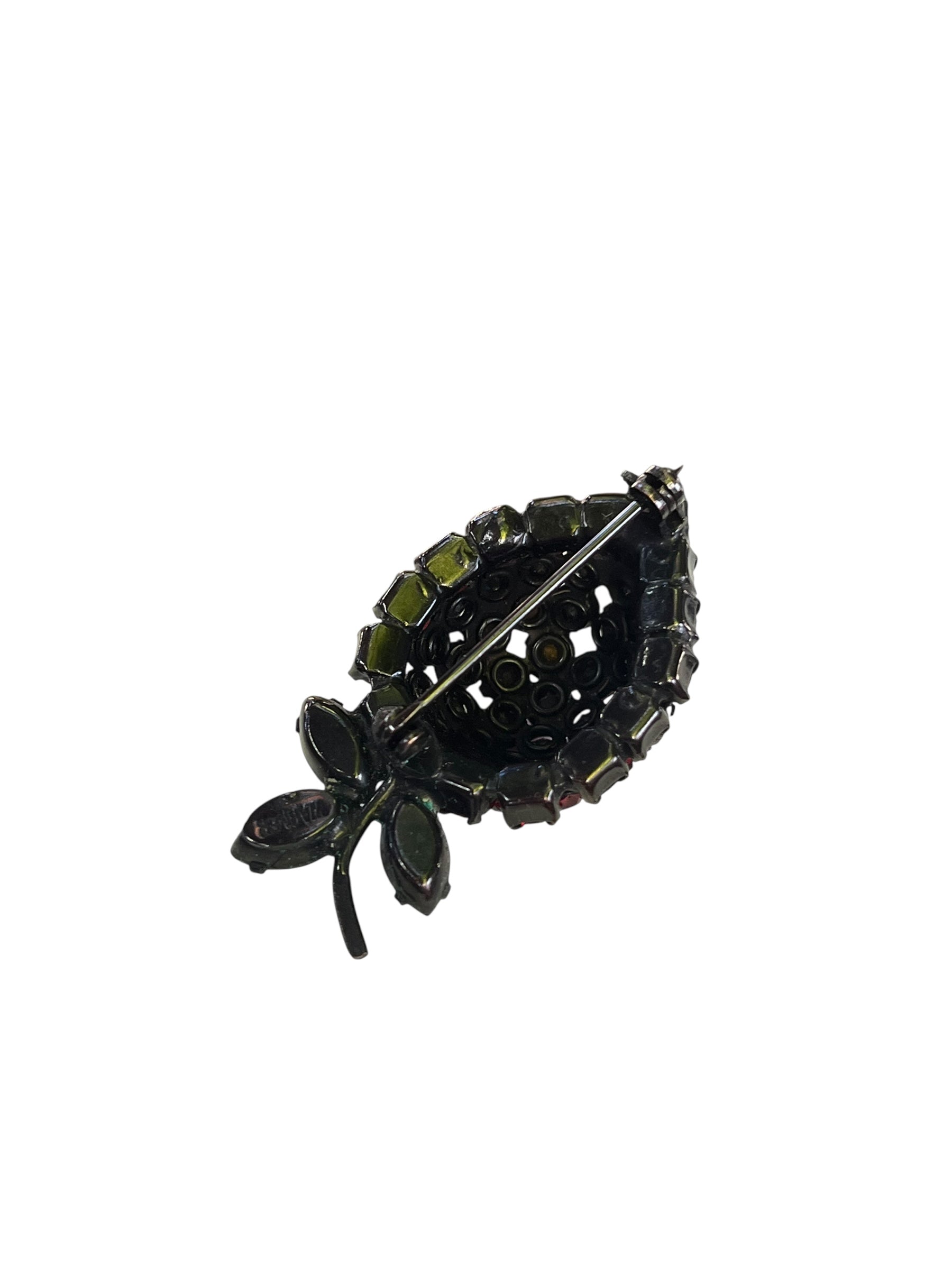 A sparkling treasure of mid-century American costume jewelry, this cherry brooch is a wonderful addition to any vintage collection.
