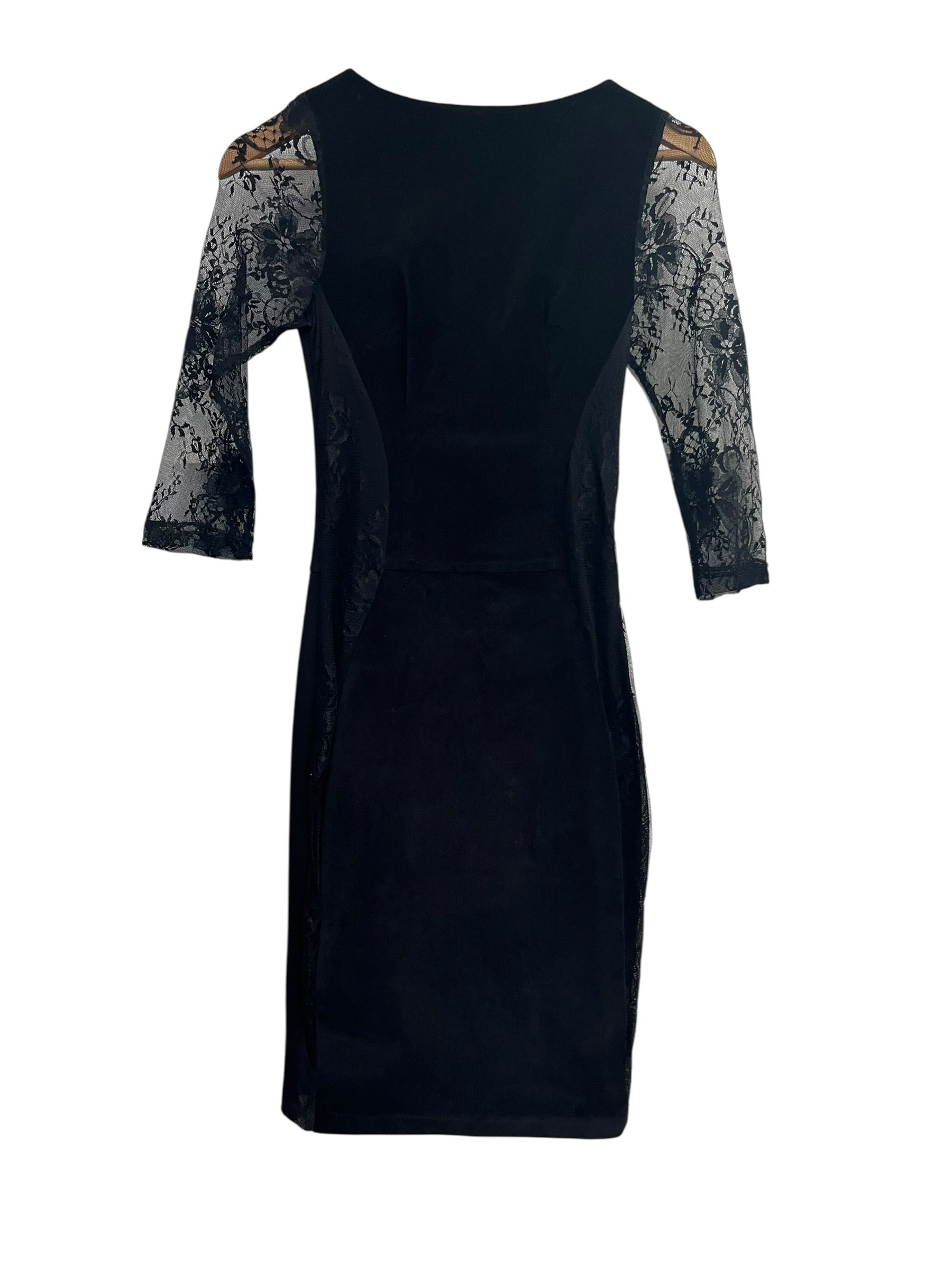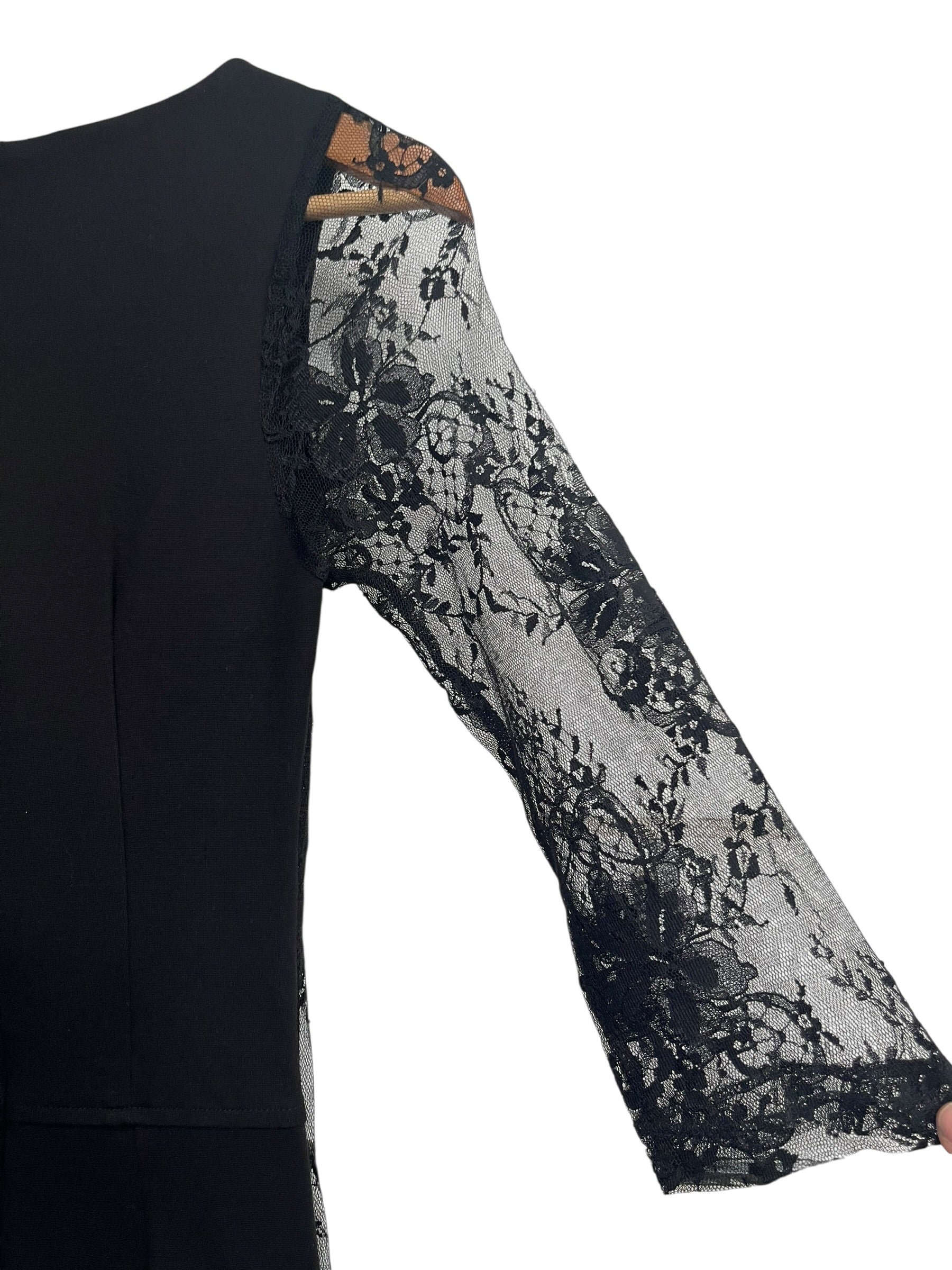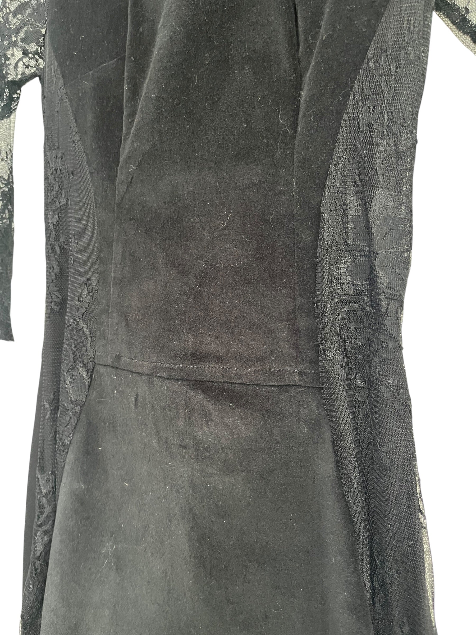 Stretch fabric, velvet bodice with 3/4 lace sleeves.